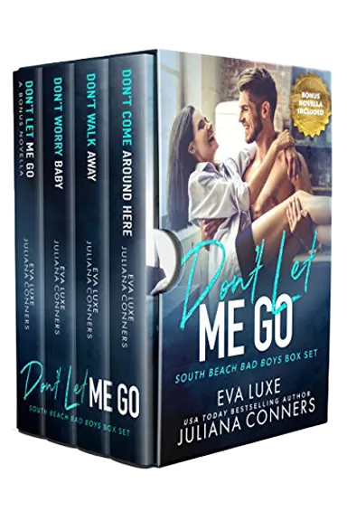 Don’t Let Me Go is a box set of three books in the South Beach Bad Boys series (Don’t Come Around Here, Don’t Walk Away and Don’t Worry, Baby). Each book is a standalone but connected full length romance novel that follows a different member of a football team and his feisty love interest. The stories have no cliffhangers and no cheating, but they do have very happy ever afters and plenty of steam. This box set includes an exclusive bonus novella (Don’t Let Me Go)that shows the couples in the future. Enjoy!
